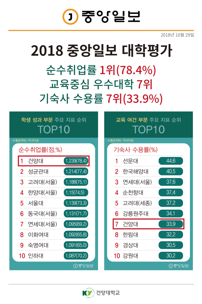 『 건양대 순수취업률 』글의 상세내용을 확인하는 표로 제목, 부서명, 등록일, 조회, 첨부, 내용으로 나뉘어 설명합니다.