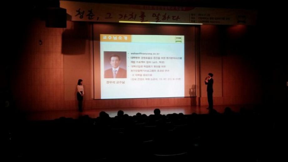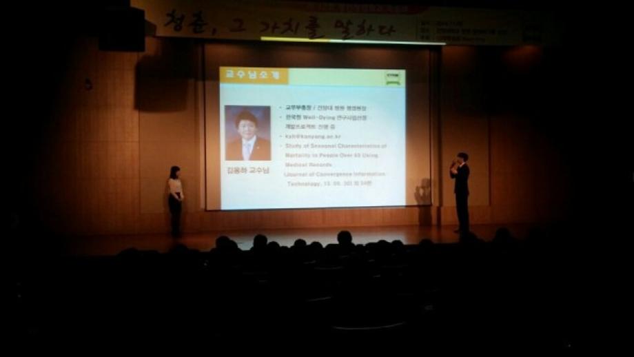 2014년 11월 29일 토요일에 있었던 학술제의 사진들입니다. 이제는 추억이 된 2014학년도 학술제를 다시금 사진으로 볼 수 있는 계기가 되었으면 좋겠습니다. 학술제가 빛날 수 있도록 준비해주신 모든 분들께 감사합니다. <교수님 소개 >