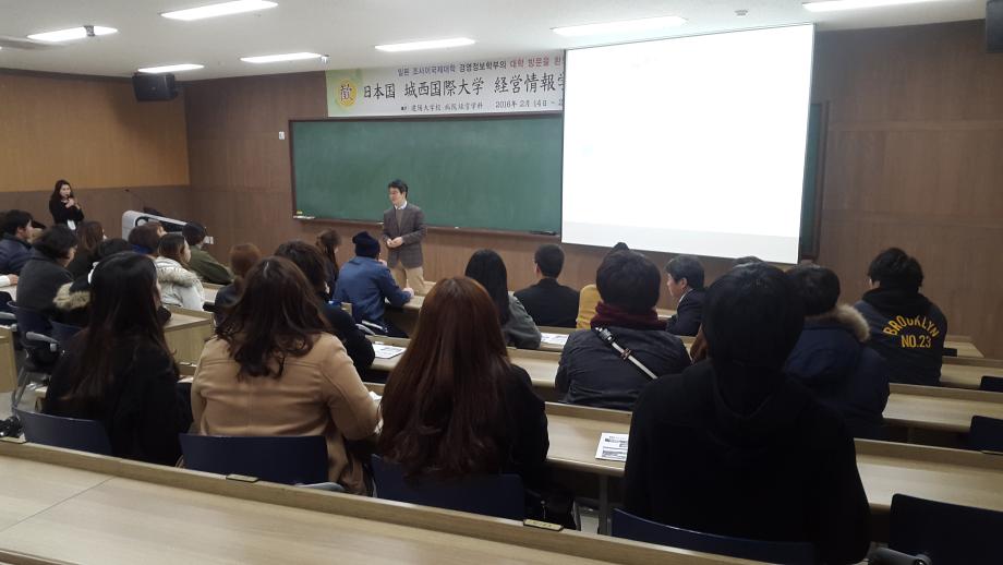 일본 조사이대학의 학생들이 14일 오후에 도착하여 환영식 및 짝꿍 소개를 하였습니다. |
