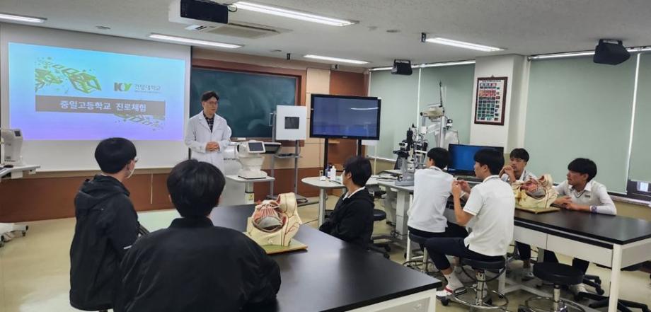 5월 4일 중일고등학교 학생들 대상으로 진로체험을 진행하였습니다. 안경광학과에 관심이 있는 학생들 대상으로 진로체험의 기회를 제공하고, 올바른 진로 정보를 제공할 수 있는 시간이었습니다. 약 2시간 동안 참여해준 학생들과 교수님께 수고의 말씀을 전해드립니다. |