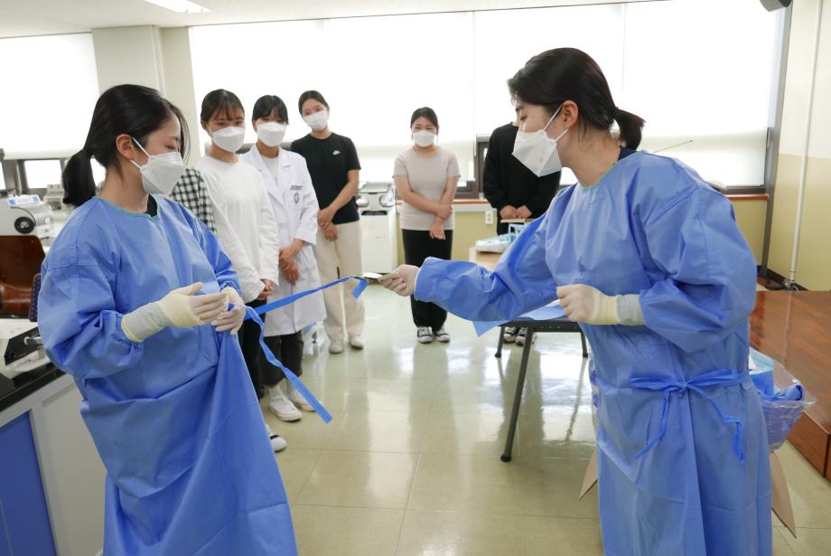 2021년 11월 6일(토) 건양대학교 치위생학과에서는 대학혁신지원사업단이 주최하고 대한치과경영관리협회, 한국치위생감염관리학회가 주관하는 ‘치과진료실 감염관리과정’교육을 실시하였다. 이 프로그램은 손 위생, 개인방호, 표면 및 기구 관리, 수관관리 등의 내용으로 치과진료실에서 치과위생사가 숙지해야 할 기본적인 내용을 다루었다. 오전에는 이론수업을 ZOOM으로 진행하였고 오후에는 인원을 분산하여 코로나19 생활방역 수칙에 따라 실습을 진행하였다. 이수 한 학생들은 교육 후 시험을 통과하여 치과감염관리사2급 자격증을 취득하였다. |