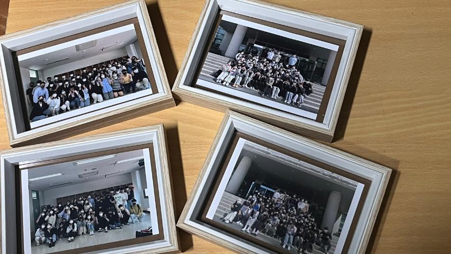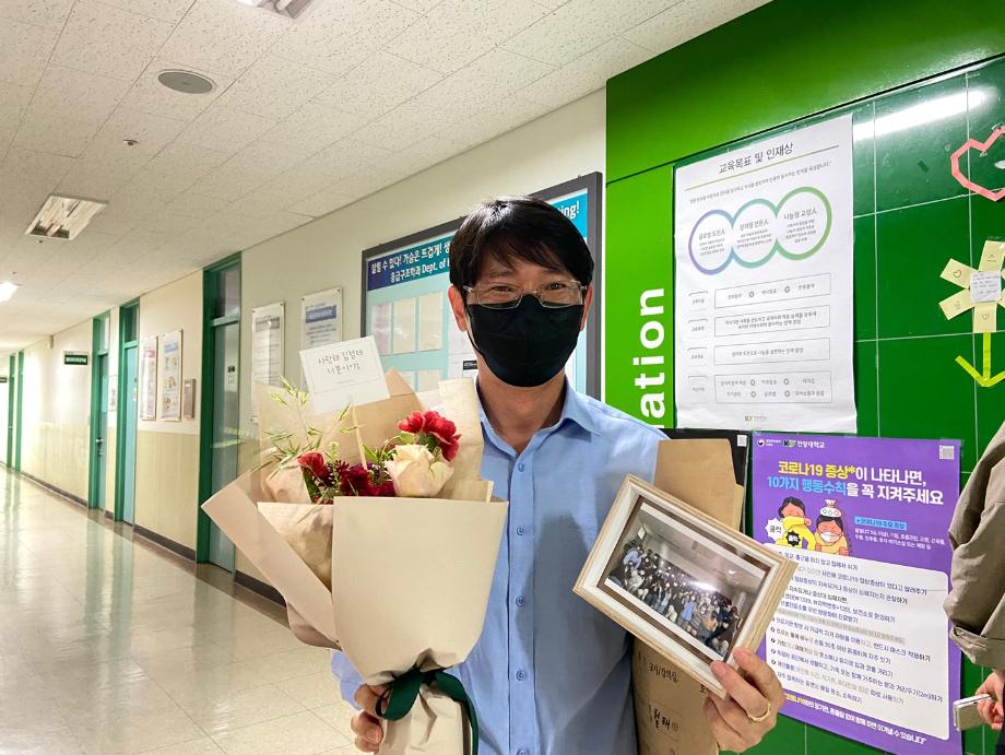 재학생들의 편지를 모아 학과 게시판에 생명의 별을 만들어 꽃, 학생들과 찍은 사진이 담긴 액자와 함께