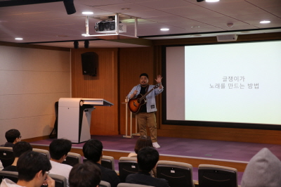 첫날인 2일 창의융합캠퍼스에서는 시인이자 싱어송라이터인 강백수 시인이 '시처럼 음악처럼'이라는 주제로 문학과 음악의 경계를 넘나들며 즐겁게 창작하고 소통하는 방법에 대한 특강을 진행했다.