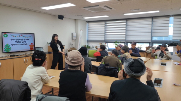 건양대 간호학과, 대전 서구치매안심센터 찾아 치매예방활동 수행 건양대학교(총장 김용하) 간호대학(학장 임효남) 학술동아리 ‘그린나래(지도교수 김두리)’ 학생들이 19일 대전 서구치매안심센터에서 65세 이상 노인들을 대상으로 치매예방활동을 수행했다. 건양대 Study Club의 일환으로 진행된 이번 활동은 학생들이 직접 노인을 위한 치매예방활동에 대한 사전학습 및 이를 바탕으로 인지자극을 위한 신체활동 중 손을 사용하여 진행할 수 있는 비누만들기 프로그램을 수행하는 방식으로 이뤄졌다. 활동에 참여한 노인들은 비누의 향을 맡고, 색깔을 인지하며, 손을 사용하여 크리스마스 관련 모양의 비누를 직접 만들며 성취감 증진, 우울증 감소 등의 효과를 볼 수 있었다. 이번 활동에 참여한 간호학과 2학년 박종성 학생은 “직접 그린나래에서 만든 프로그램을 어르신들과 함께 진행하면서 기뻐하시는 모습을 보고 보람을 느꼈다”고 밝혔다. 간호학과 김두리 교수는 “학생들이 치매예방활동뿐만 아니라 세대 간 교류를 통해서 서로를 이해하는데 도움이 되었다. 이에 지속적으로 그린나래는 치매예방활동을 수행할 예정”이라고 말했다.