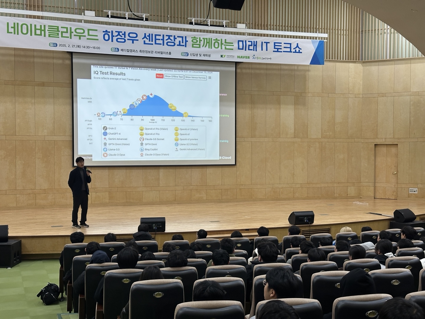 건양대 SW중심대학, 네이버클라우드 하정우 센터장과 함께하는 미래 IT 토크쇼 성황리 종료 건양대학교(총장 김용하) SW중심대학(단장 김용석)이 27일 건양대 대전 메디컬캠퍼스 죽헌정보관 리버럴아츠홀에서 신입생 및 재학생을 대상으로 진행한 ‘네이버클라우드의 하정우 센터장과 함께하는 미래 IT 토크쇼’를 성황리에 마쳤다고 밝혔다. 이번 토크쇼는 인공지능(AI)의 최신 동향 및 미래 전망에 대한 이해 증진 및 학생들에게 실무적인 AI 관련 경험과 통찰력을 제공하기 위한 목적으로 진행됐다. 토크쇼에 앞서 진행된 SW중심대학사업단장 및 하정우 센터장 등 관계자들과의 간담회에서는 인공지능의 최신 동향, 산업 활용사례, AI 기술 및 산업의 미래 방향, 네이버클라우드 센터와 협력 강화 및 AI·SW 교육 발전을 위한 논의를 진행했다. 또한 전문가와의 직접적인 소통을 통해 실질적인 진로 탐색 기회를 제공하고 최신 기술 동향 및 실무적인 인사이트 등의 제공 필요성에 간담회 참가자들 모두 깊이 공감했다. 하정우 네이버클라우드 AI 이노베이션 센터장은 대한민국 인공지능(AI) 분야의 선도적인 전문가로 이날 학생들에게 ▲AI 시대 대학생이 준비해야 할 미래 역량 ▲ChatGPT 이후 생성형 AI의 미래와 미래 직업 전망 ▲AI 분야 취업 준비를 위한 취업 로드맵 및 네이버 클라우드, 카카오, 구글, 삼성 등 주요 기업의 AI 인재 채용 트렌드 ▲AI 기술을 활용한 대학생 창업을 위한 성공사례, AI 분야, 지원 프로그램 및 네트워킹 기회 ▲대학 생활을 위한 AI 서비스 활용법 ▲AI와 미래 일자리 등 다양한 주제에 대해 이야기했다. 또한 딥시크(DeepSeek)로부터 촉발된 생성형 AI의 전망과 문제점, 소버린 AI 등에 대한 내용도 심도있게 다뤘다. 이날 토크쇼에 참여한 학생들은 AI 및 IT 업계 진로, 최신 AI 기술 및 산업 트랜드, AI 실무와 프로젝트 관련 내용에 대해 활발한 질문을 이어갔고 네이버 AI 및 하이퍼클로버 X 관련하여 다른 모델과의 차별점, 글로벌 시장에서의 경쟁력 및 발전 방향과 목표 등에 많은 관심을 보였다. 김용석 SW중심대학 단장은 “앞으로도 AI 및 SW 분야의 다양한 전문가를 초빙한 세미나 및 토크쇼 등을 계속해서 운영함으로써 건양대 학생들의 AI·SW 역량 강화와 진로탐색을 위한 다양한 기회를 제공하겠다”고 밝혔다.
