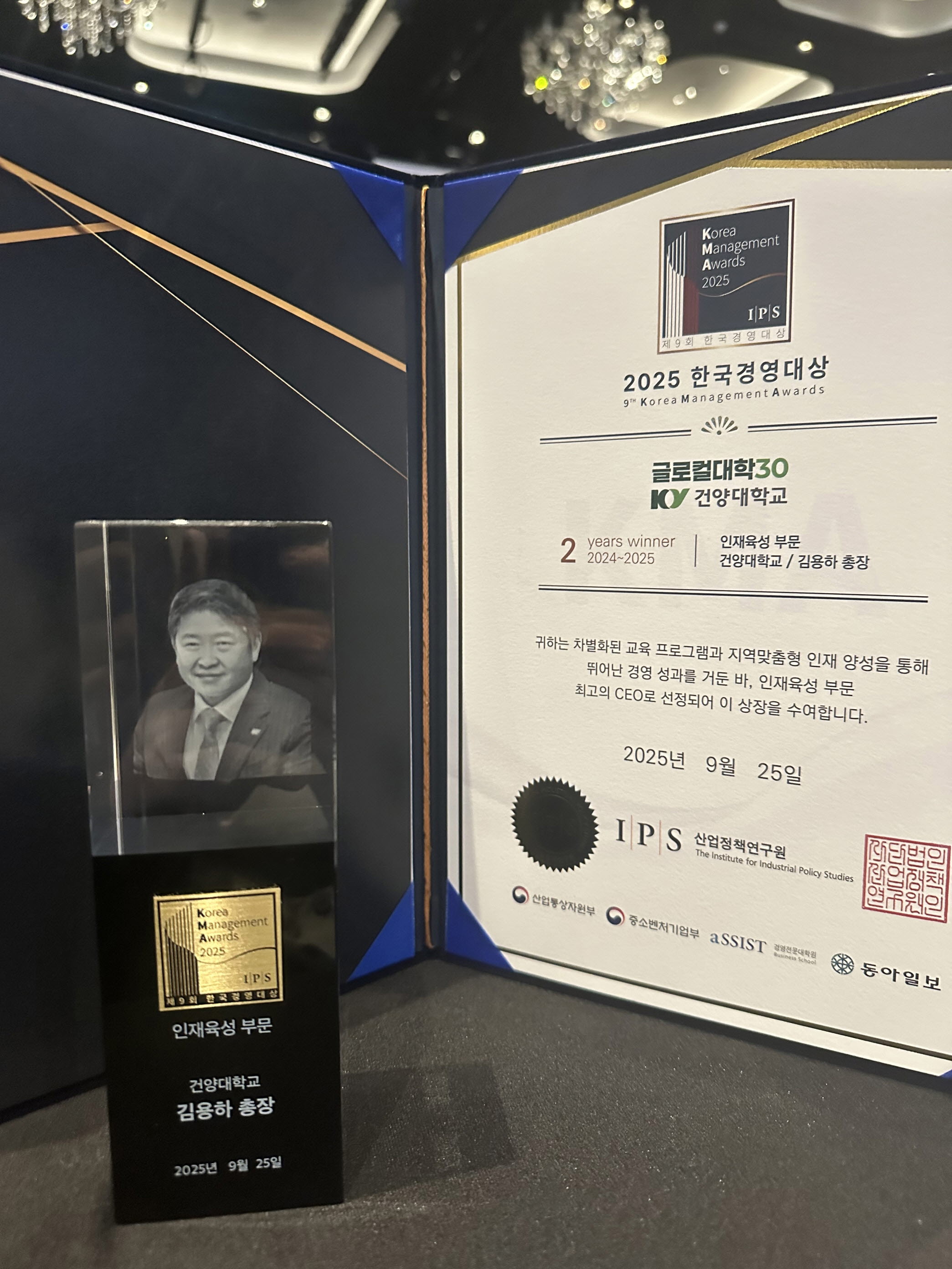 건양대 김용하 총장, 2025 한국경영대상(인재육성 부문 2년 연속 수상).jpg