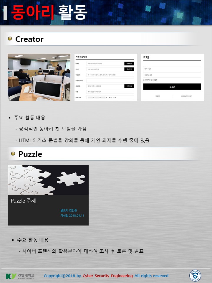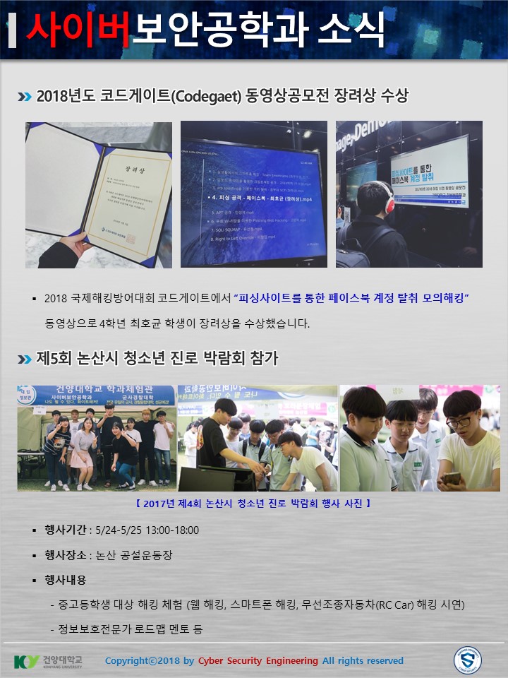 『 사이버보안공학과 보안매거진 2018-2호 』글의 상세내용을 확인하는 표로 제목, 부서명, 등록일, 조회, 첨부, 내용으로 나뉘어 설명합니다.