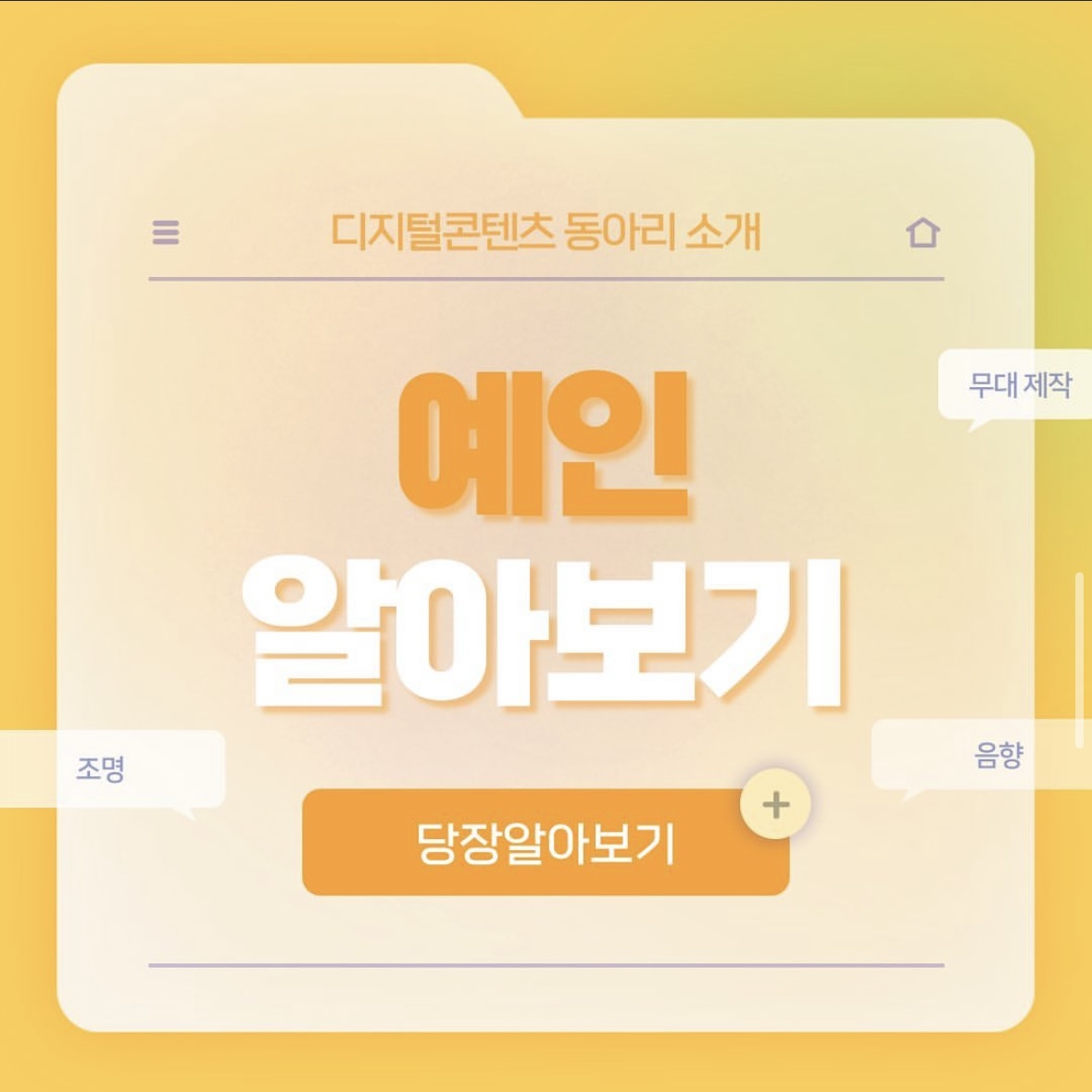 예인은 공연 예술을 사랑하는 학생들이 모여 함께 무대 위의 공연을 만들어가는 동아리입니다. 공연 작품 선정부터 연출, 기획, 배우, 무대 제작, 조명, 음향, 의상·분장 등 공연의 전반적인 과정에 참여하여 다양한 분야에서의 경험을 쌓아갑니다. 매년마다 예인 정기공연 및 학술제를 통해 학과 뿐만 아니라 학교 전체 학생들에게 공연을 선보이고 있으며 뮤지컬, 연극 등 한 가지 장르에 국한되지 않고 다양한 장르의 공연 예술을 시도합니다. 예인의 구호인 '예술을 즐기고 인생을 사랑하는' 처럼 매 순간을 즐기며 공연을 무대에 올리고 있습니다.