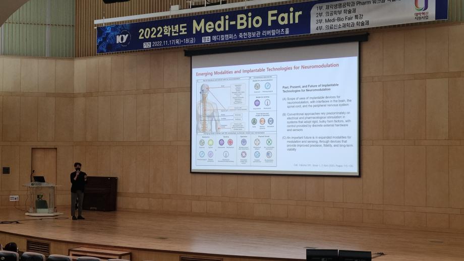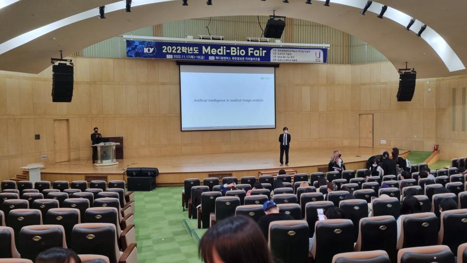 Medi-Bio Fair와 연계하여 의료인공지능학과 전공역량 강화 특강 - 일시 : 2022.11.17(목) - 장소 : 리버럴아츠홀 - 강사 : 의료인공지능학과 조환호 교수 의공학과 박인수 교수 |