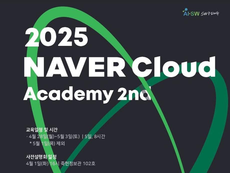 네이버클라우드 아카데미 사전설명회 -기간: 2025.04.28~05.03 -장소: 죽헌정보관 |