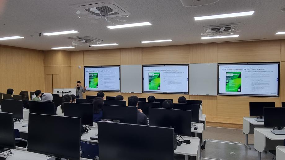 건양대 SW중심대학사업단은 3월 6일(금) 메디컬캠퍼스 죽헌정보관에서 ‘네이버클라우드 아카데미 3기’ 교육과정 수료생을 대상으로 수료식을 개최하고 프로젝트 성과 공유와 진로 격려의 시간을 가졌다. 3기 과정은 대전대학교 등 지역 대학과의 협업을 통해 교육 대상을 확대하여 클라우드 전문 교육을 지역 대학과 공유함으로써 충청권 공동 인재 양성 기반을 강화하고, 대학 간 협력을 통한 교육 확산 모델을 실현했다. 건양대학교는 네이버클라우드 아카데미 운영을 통해 지역 클라우드 교육 거점 대학으로서의 역할도 강화하고 있다. 대학 내에 전용 교육 공간을 구축하고, 인근 대학과 공동 교육을 추진함으로써 대전·충청권 대학 간 클라우드 교육 협력 모델을 정착시키고 있다. 이는 지역 내 클라우드·AI 산업 수요에 대응하는 동시에, 지역 정주형 디지털 인재를 양성하는 선순환 구조를 만드는 데 목적이 있다.